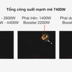 – Vùng trái 2200/3700W và 2600/4400W – Vùng phải trên 1400/2200W – Vùng phải dưới 1800/3700W.