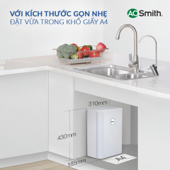 A. O. Smith S600 với kích thước chỉ 310 x 185 x 430 mm, có thể để lên bàn, dưới gầm tủ giúp tiết kiệm diện tích và tạo điểm nhấn cho không gian nội thất của gia đình.