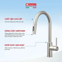 - Thân vòi xoay 360 độ cho phạm vi tiếp cận lớn